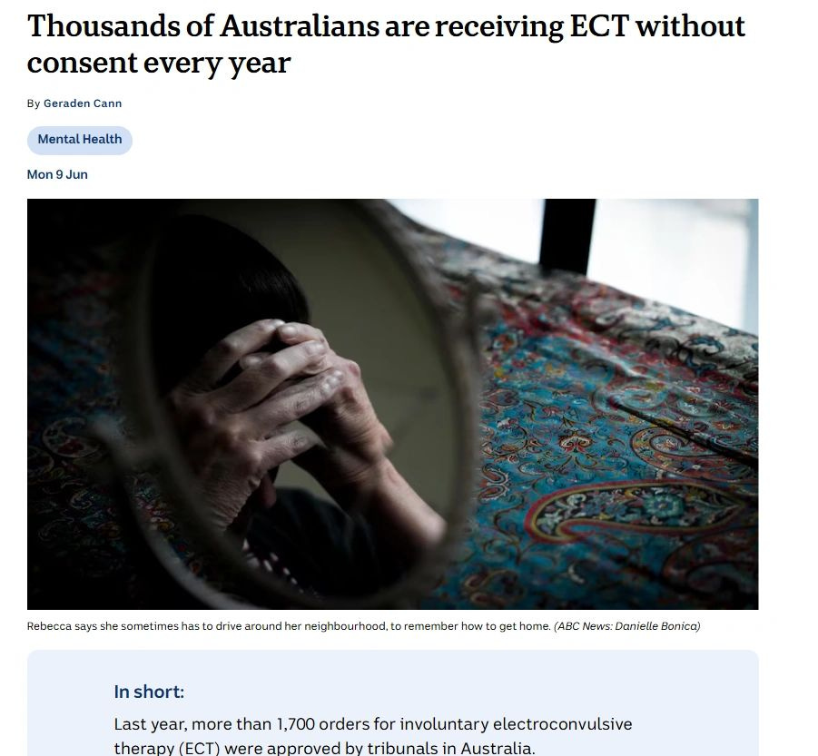 And this, horrible, obviously: https://www.abc.net.au/news/2025-06-09/electroconvulsive-therapy-consent-depression/105302318